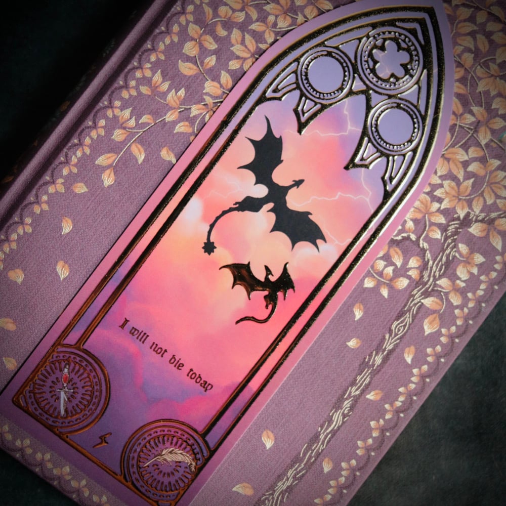 Bookmark inspired in the flight of Tairn and Andarna, with foil elements.