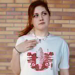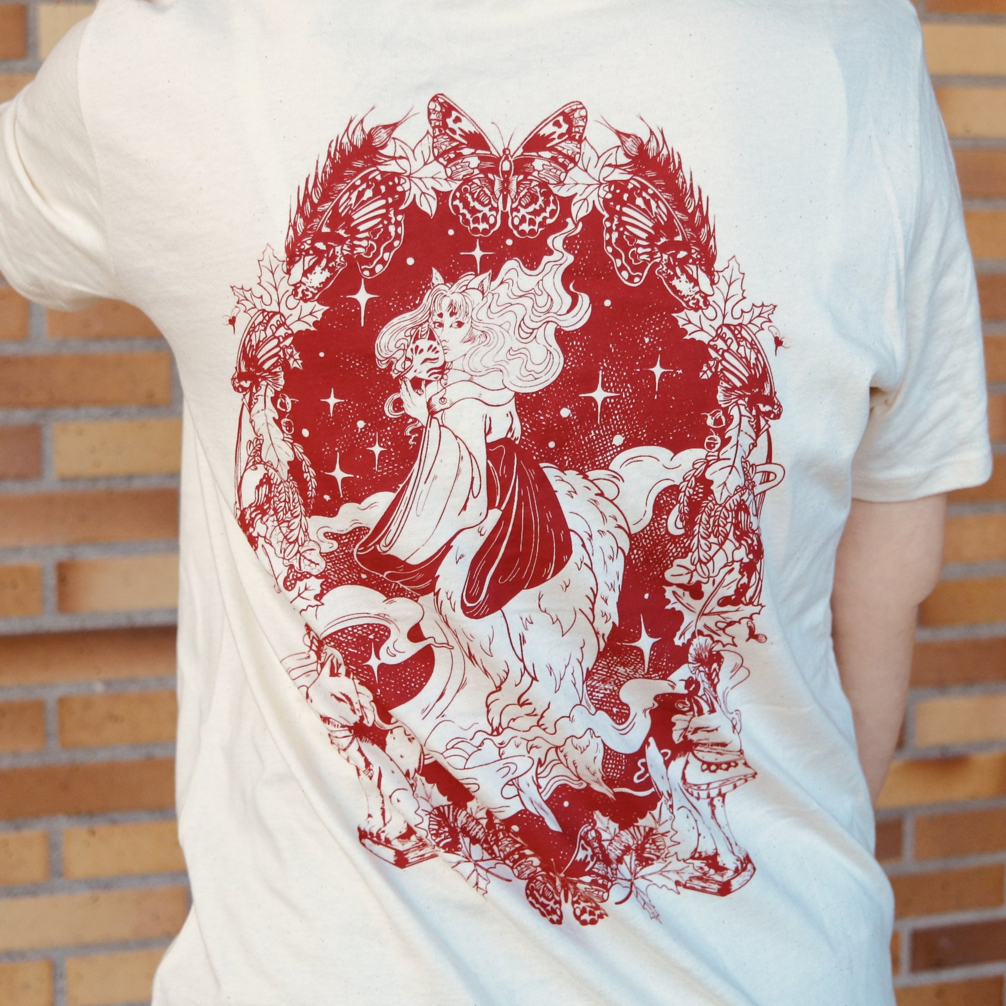 La camiseta está confeccionada en algodón 100% orgánico, pesa 190 gramos y es de color crema vintage. Se recomienda lavarlo en programas cortos.