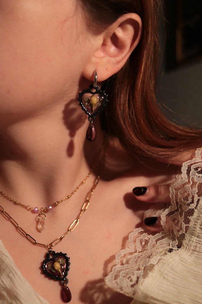 Pendientes y colgante Heart Locket Raven 🐦⬛